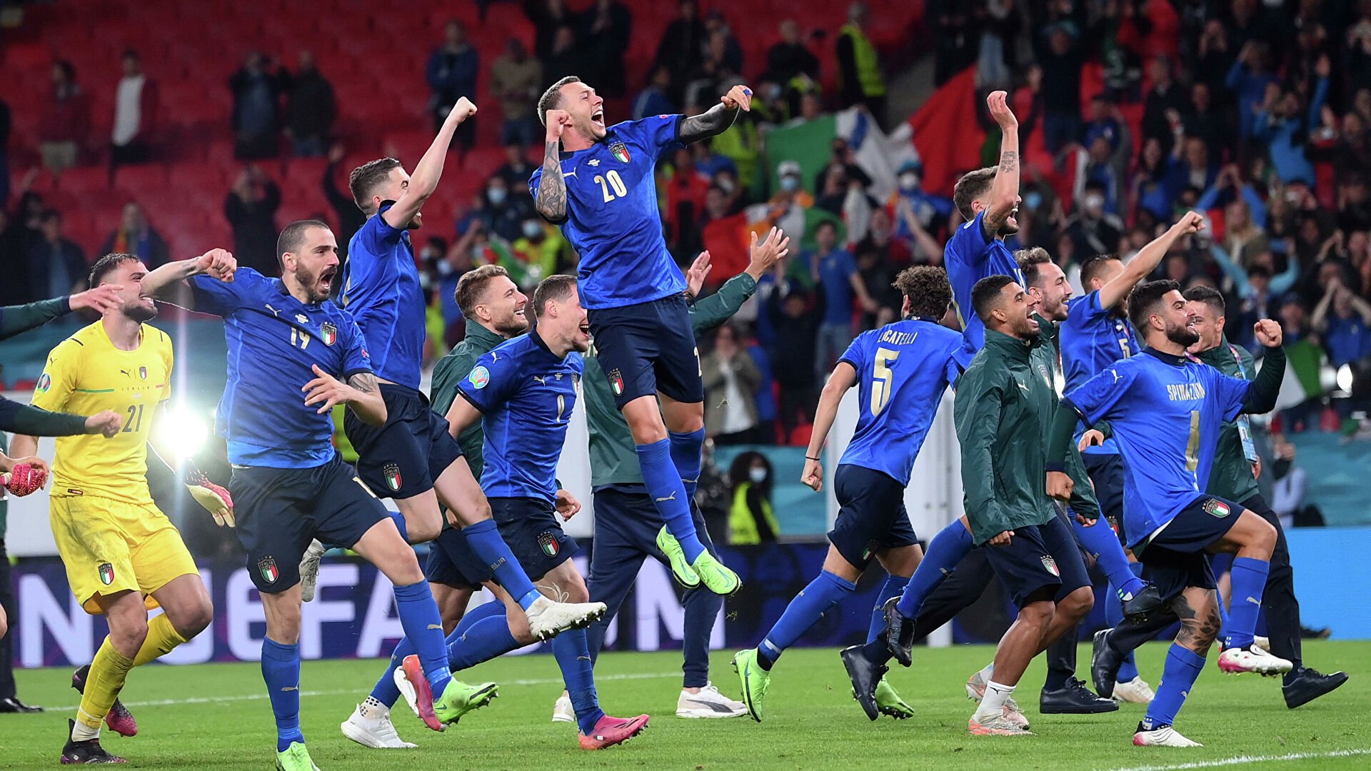 Никто на евро так еще не делал. Сборная италии стала чемпионом европы по футболу, обыграв сборную англии со счетом 2:1. Итальянцы с большим трудом выхватили победу у англичан: Так, 3 из 4 команд, которые закончили свой путь на четвертьфинальной стадии с одной стороны, создали в атаке больше всех на чемпионате, с другой — в основное время выиграли только 1 из 6 матчей, у словакии. Матч проходил в лондоне на «уэмбли».
